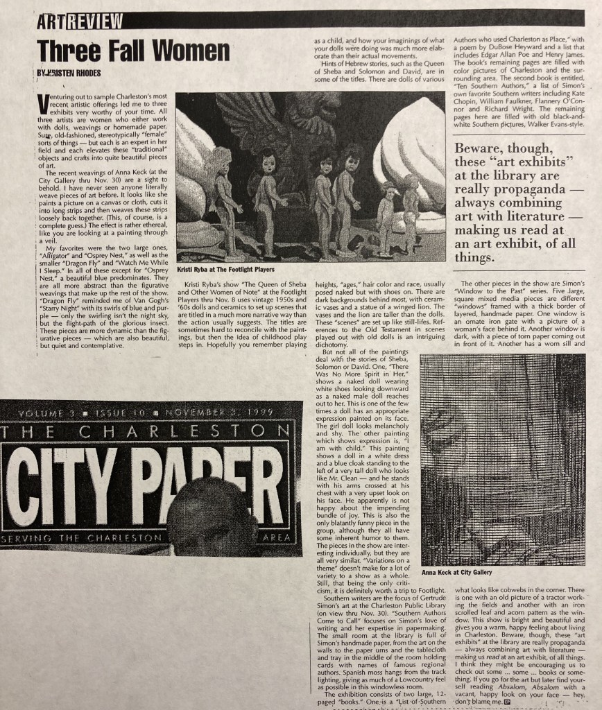 Works by Anna Keck, Kristi Ryba, and Gertrude Simon